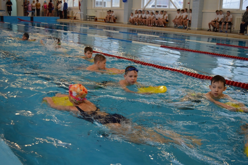 Перед собравшимися с показательными выступлениями выступили директор спортивного комплекса поселка Шолоховского, чемпион мира по плаванию Анатолий Поляков и учащиеся спортивной школы. Тренером спортивной школы Еленой Иванченко для детей школ №7 и №8 был проведен первый урок всеобуча по плаванию.