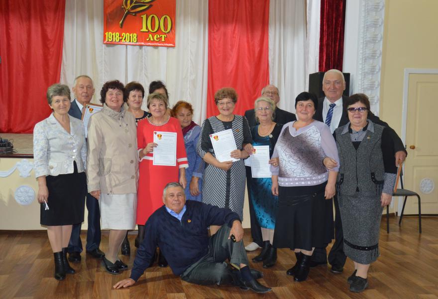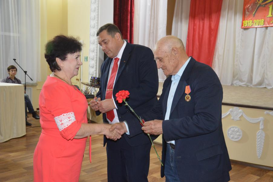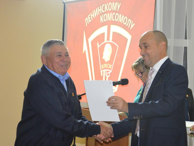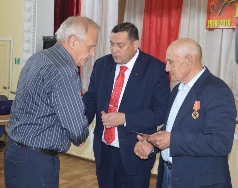 Первый секретарь комитета Белокалитвинского местного отделения КПРФ Алексей Пономарев и ветеран ВЛКСМ, председатель оргкомитета «Дети войны» Виктор Михайлович Попов поздравили присутствующих с юбилеем и вручили Почетные ордена «100 лет Ленинскому комсомолу».