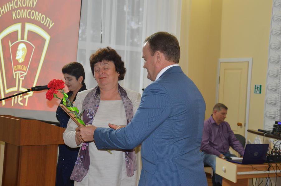 Самым торжественным и ярким моментом стало вручение комсомольцам всех поколей памятных значков «Комсомолу-100 лет».