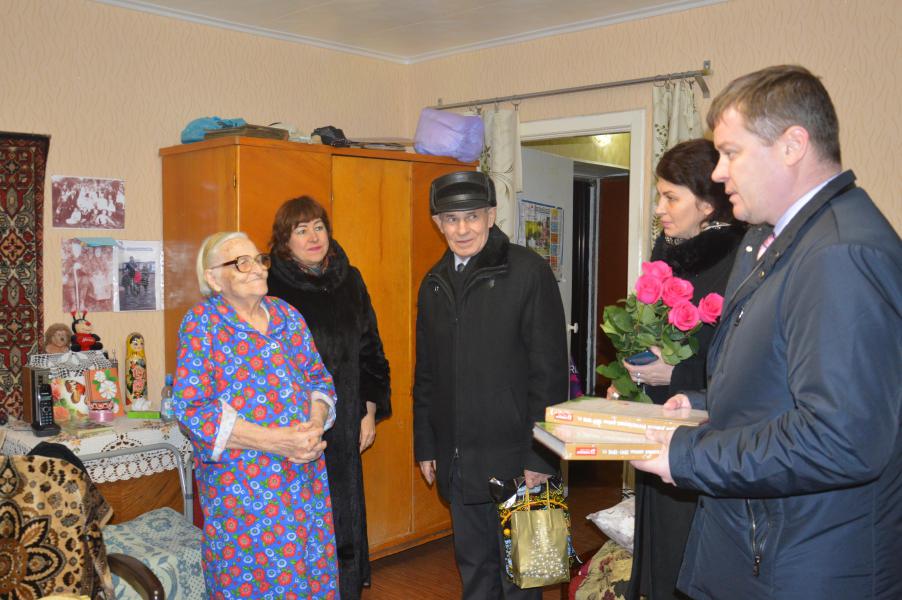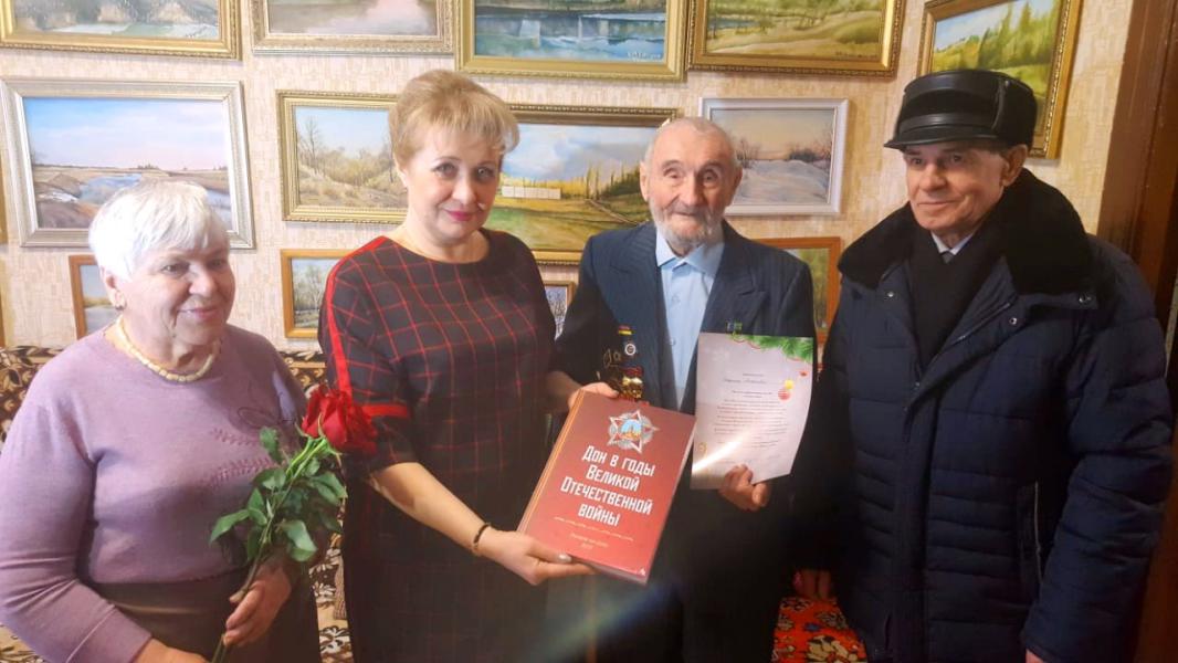 Глава Администрации Белокалитвинского района Ольга Мельникова поздравила с наступающим Новым годом белокалитвинцев - участников Великой Отечественной войны и со словами благодарности за Великую Победу вручила подарки. По поручению Губернатора Ростовской области Василия Голубева были вручены памятные книги «Дон в годы Великой Отечественной войны».