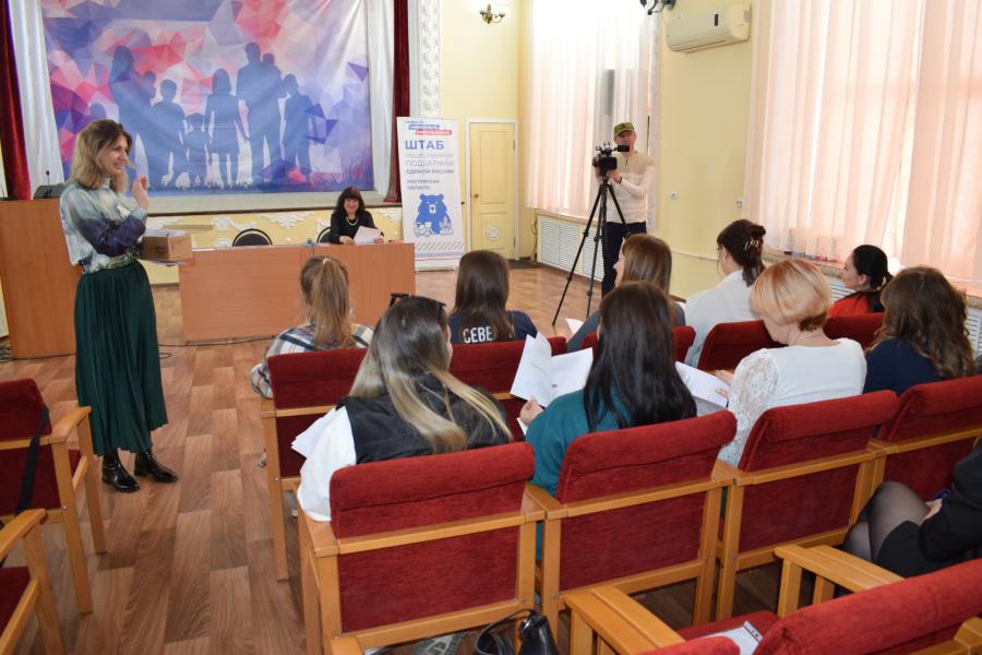 Главный специалист отдела ЗАГС Администрации Белокалитвинского района Татьяна Куркина выступила с докладом о регистрации рождения ребенка.