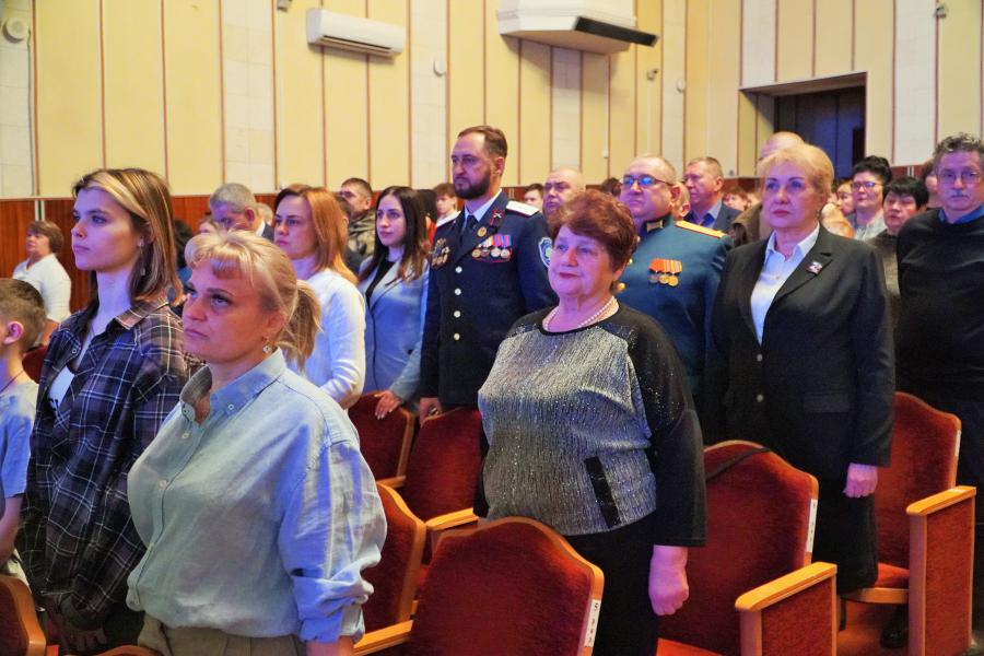 Белокалитвинцы всегда были и остаются достойными преемниками ратных традиций предков, настоящими защитниками своего края и страны. На торжественном собрании за мужество, отвагу и самоотверженность, проявленные при исполнении воинского долга, Орденом Мужества был отмечен ефрейтор Дмитрий Алехин. Громкие аплодисменты звучали в адрес Натальи Гудилиной, матери участника СВО, который сегодня находится на передовой. Наталья Владимировна удостоена медали «Мать защитника Отечества». Особую, щемящую ноту в праздник внесла церемония передачи государственных наград. Ордена Мужества, которыми посмертно награждены герои, павшие при исполнении воинского долга, были переданы их родным и близким. Память погибших защитников почтили минутой молчания.
