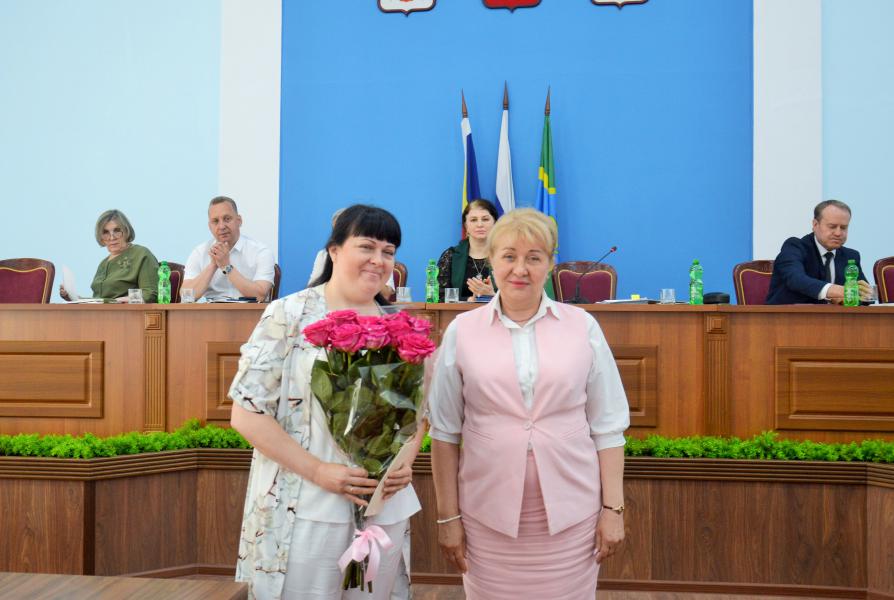 На заседании Ольга Мельникова поздравила с 85-летием заслуженного библиотекаря Белокалитвинского района Юню Ивановну Грязнову, вручила юбиляру букет и памятный подарок.