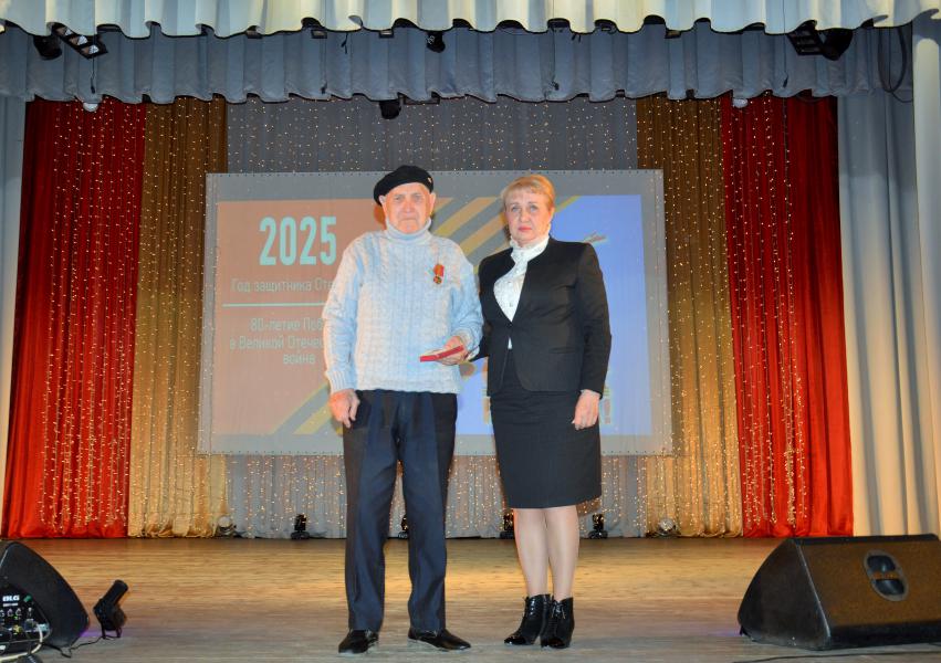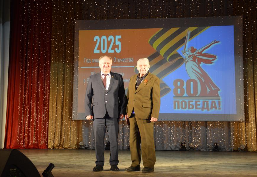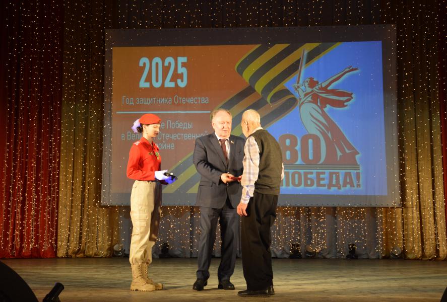 Ольга Мельникова и Андрей Харченко вручили юбилейные медали «80 лет Победы в Великой Отечественной войне 1941-1945 годов» труженикам тыла Петру Ивановичу Конопле и Анатолию Петровичу Кудрявцеву, бывшим несовершеннолетним узникам концлагерей – Анатолию Ивановичу Шевцову и Борису Семеновичу Таланову.