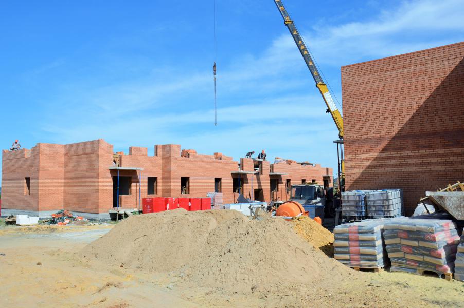На сегодняшний день строительная готовность домов составляет чуть более 30%. В настоящее время выполняются работы по кирпичной кладке наружных стен второго этажа. Представитель подрядной организации объяснил причины отставания и перспективы наращивания темпов строительства