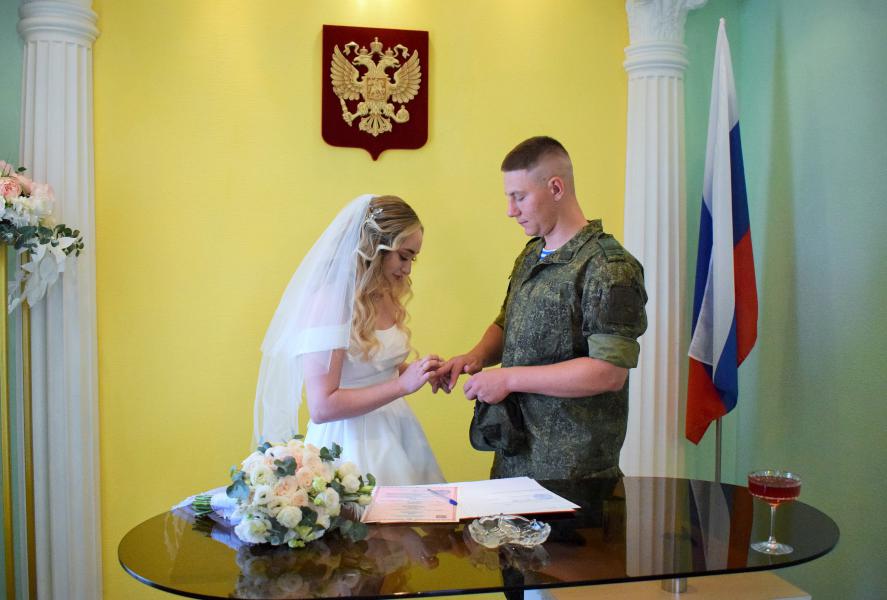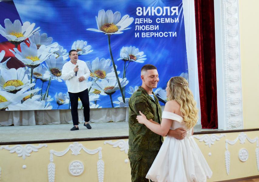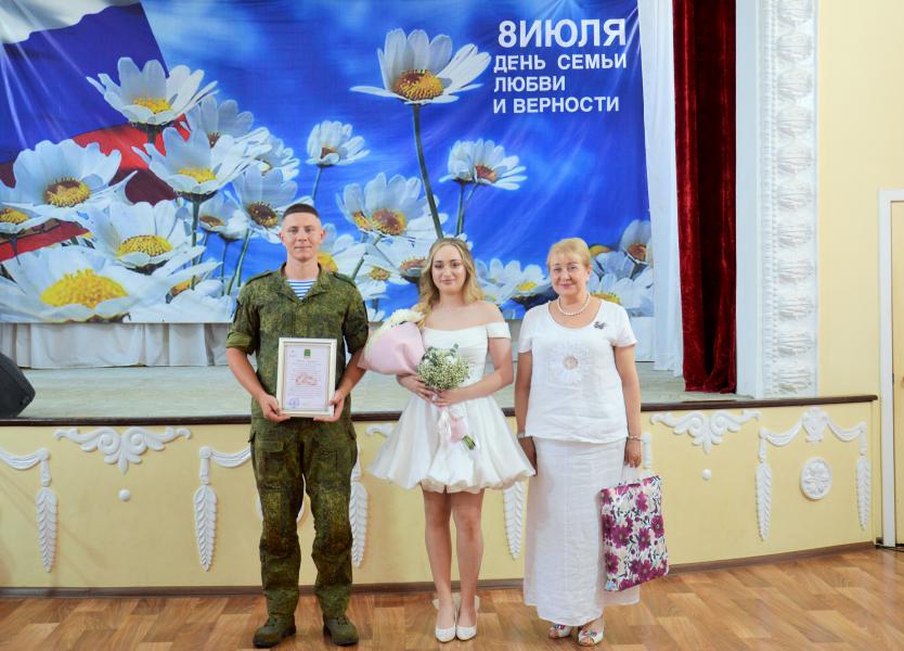 Символично, что в этот праздничный день родилась молодая семья Жуковых. Игорь – участник спецоперации, с 2022 года защищает нашу Родину, имеет боевые награды. Ради такого важного события командование отпустило его в однодневный отпуск. Свидетельство о регистрации брака Игорю и Ладе вручила глава Администрации района Ольга Мельникова и пожелала новоиспеченным супругам на долгие годы сохранить взаимопонимание, ценить и беречь друг друга
