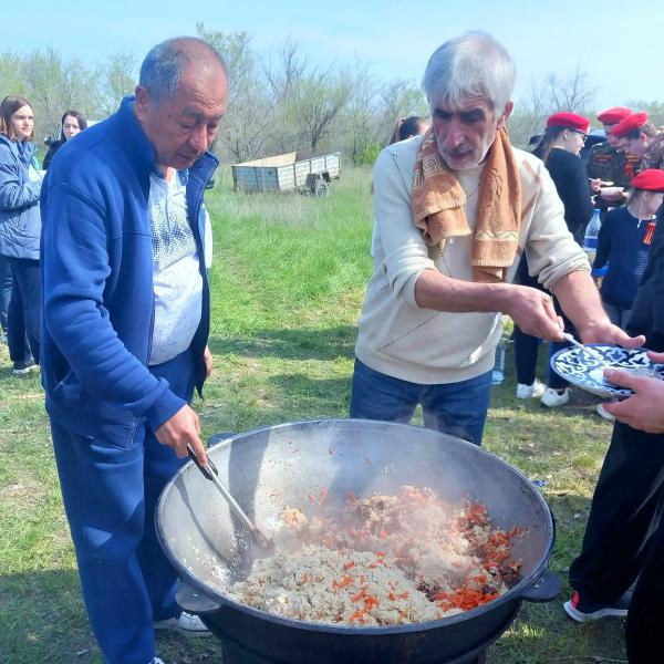 После завершения работ всех ждал сюрприз: лидеры узбекской, армянской этнических групп и турок-месхетинцев приготовили ароматный плов и горячий чай.