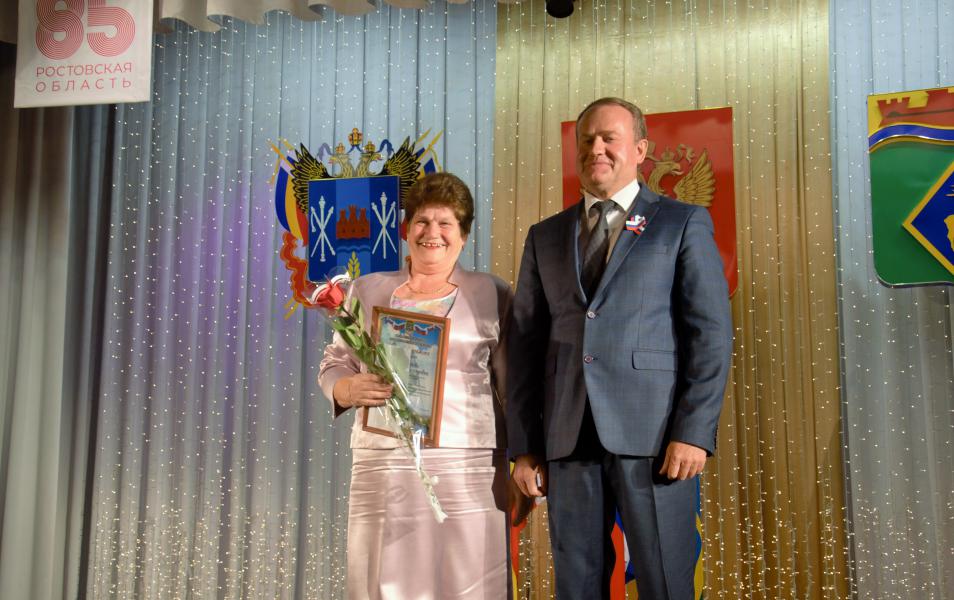 Первый заместитель министра промышленности и энергетики Ростовской области Вячеслав Тимченко вручил памятные знаки «85 лет Ростовской области» Олегу Каюдину – заместителю главы Администрации района по жилищно-коммунальному хозяйству и делам ГО и ЧС; Любови Гвозденко – балетмейстеру Дворца культуры имени Чкалова; Ирине Герасименко – главе администрации Литвиновского сельского поселения;