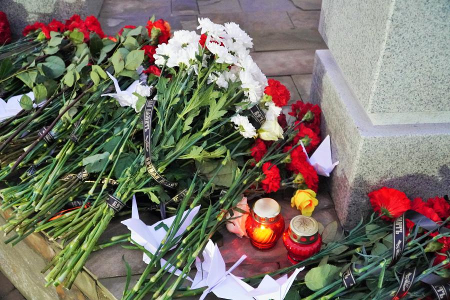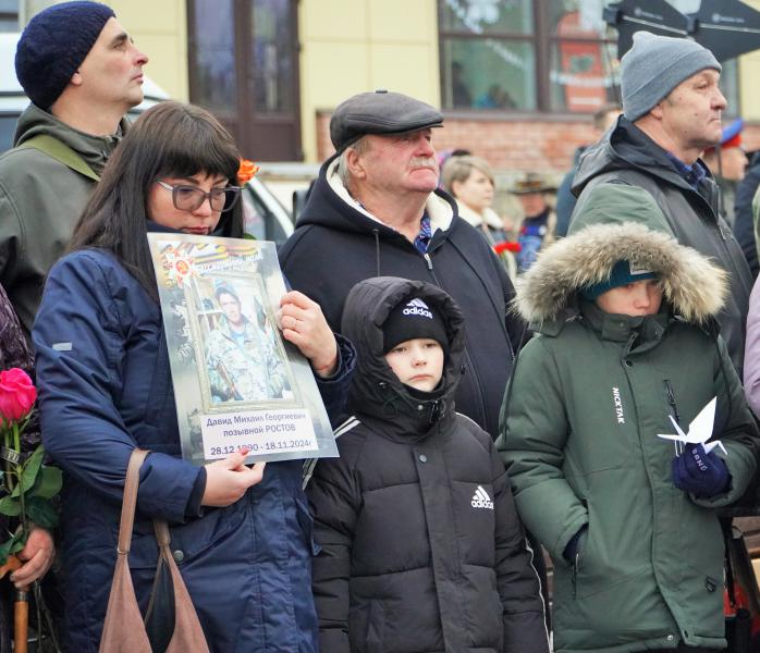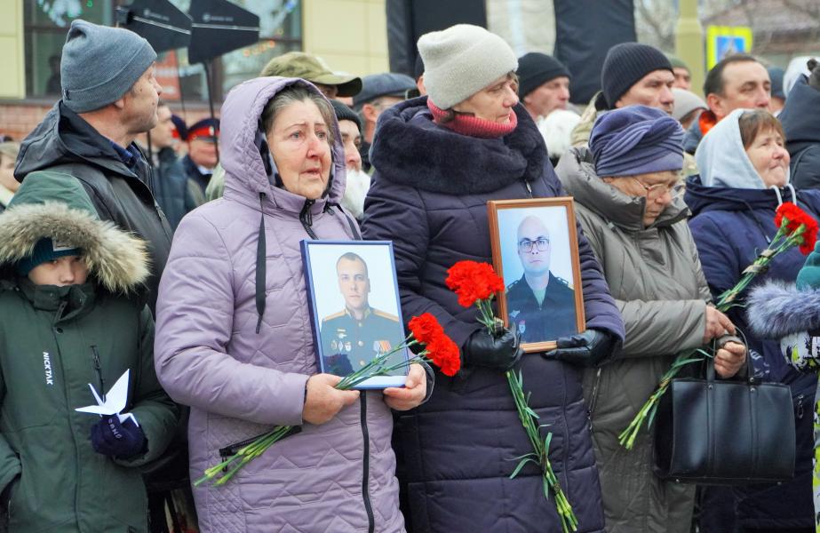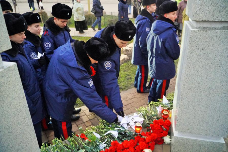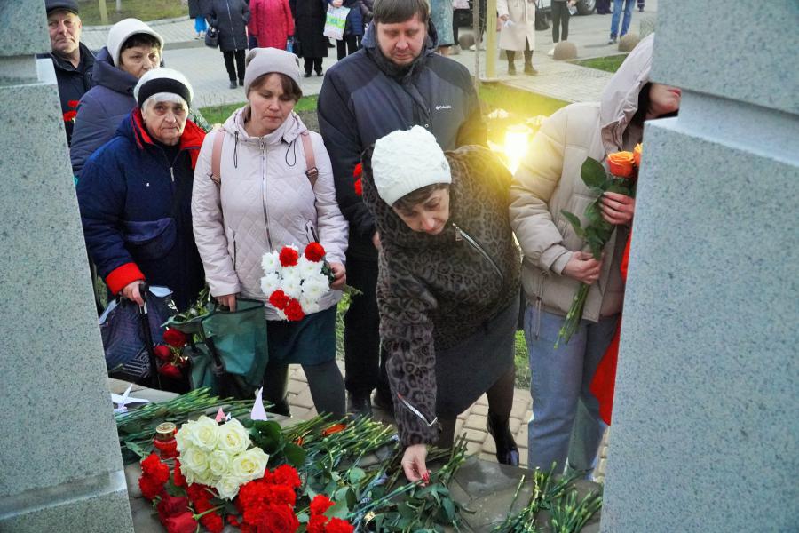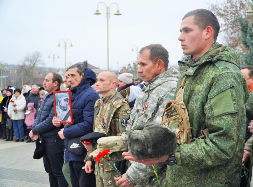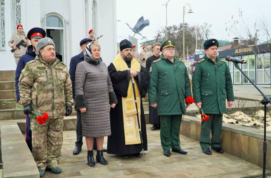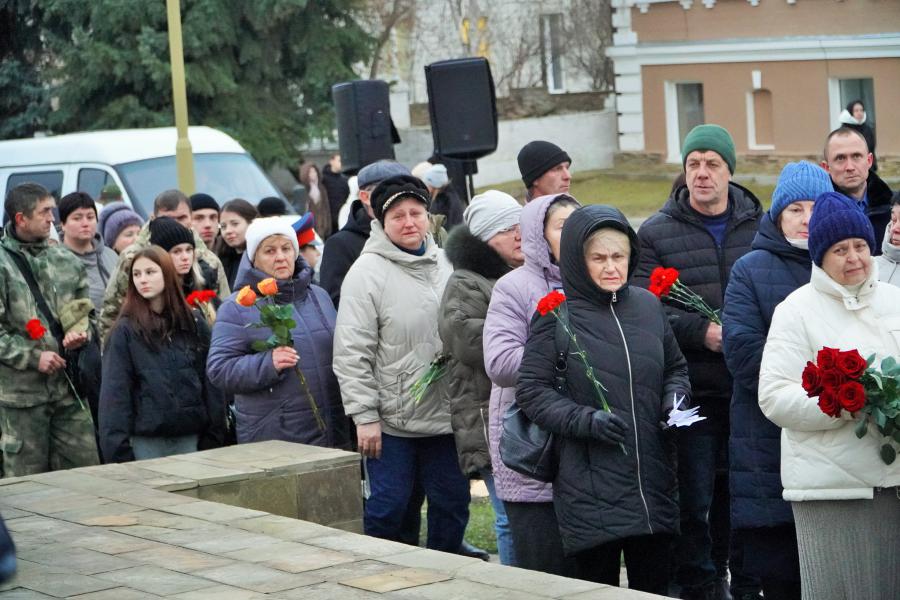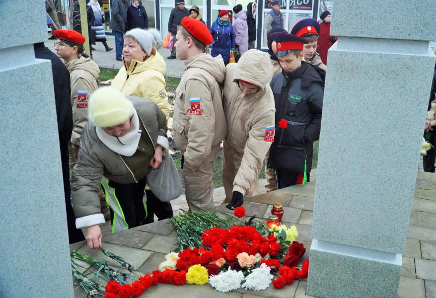 Присутствующие почтили память белокалитвинцев, погибших в зоне специальной военной операции на Украине, минутой молчания и возложили цветы к мемориалу.