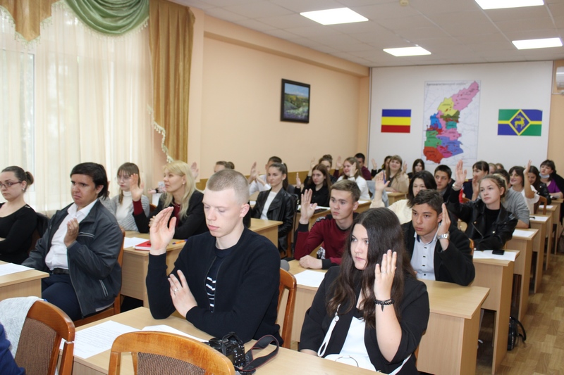 В парламенте будут работать студенты и преподаватели техникумов, педагоги и учащиеся средних школ, предприниматели и молодые специалисты Белокалитвинского района. Открытым голосованием избран председатель молодежного представительного органа - им стал Никита Усов, учитель русского языка и литературы Погореловской основной общеобразовательной школы.